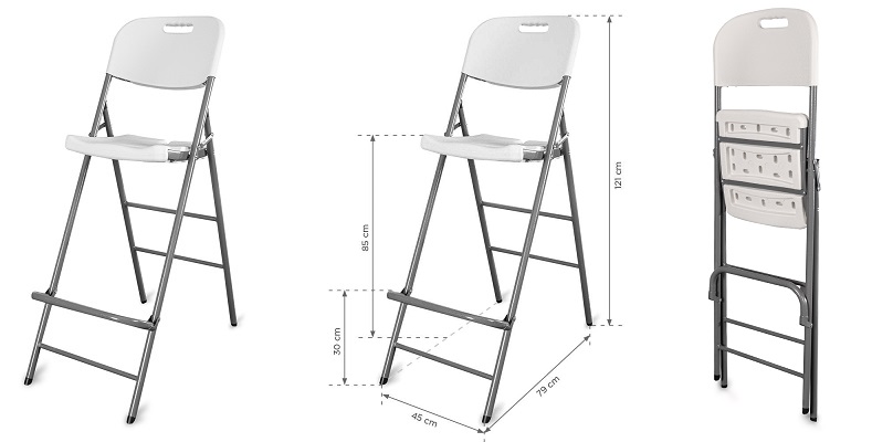 Robuuste inklapbare statafelkruk met stalen poten. Zie voor afmetingen de bijgevoegde afbeeldingen. Optie: hoezen in wit of zwart.| Aantal | Prijs per stuk |